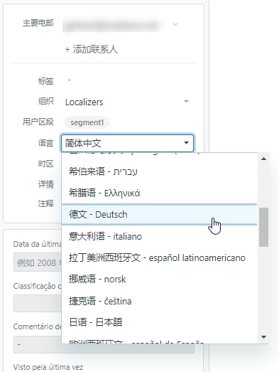 您可在用户个人资料中设置用户的语言首选设置(其中包括您的员工和终端用户)。