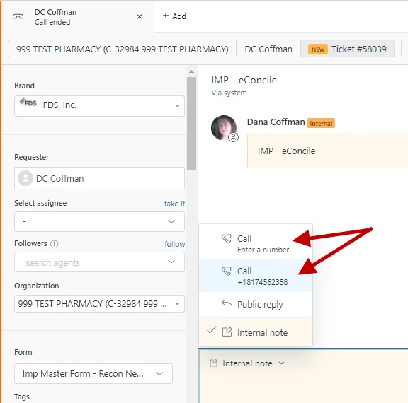1) We would prefer to make our outbound calls from within the ticket so everything stays together. However, there isn't a way to control the outbound phone#. Suggestions?