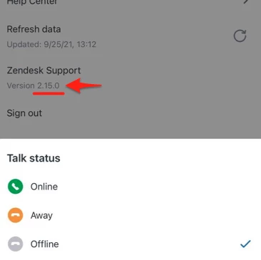 Talk Status not on newer versions of Zendesk Support mobile app
