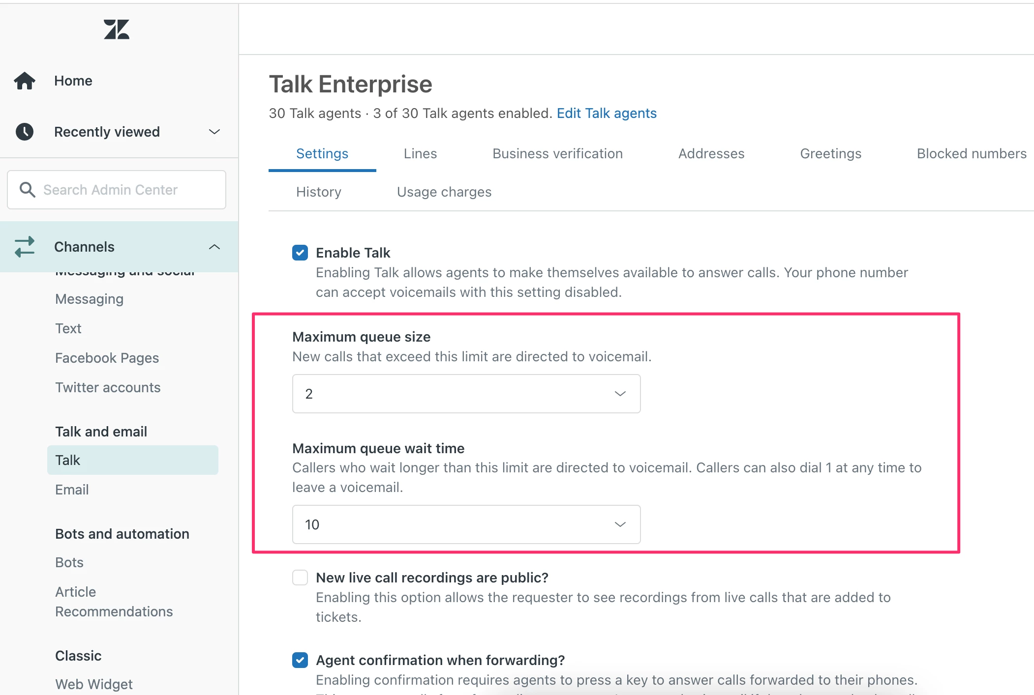 We are having an issue with calls being cut off instead of queued when all agents are busy. Is there an option to change how long customers can queue before being cut off?