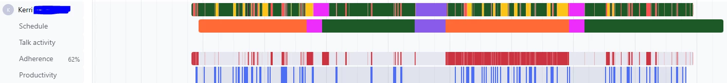 Is anyone else seeing where they have combined workstreams and it is showing their agents out of adherence with no explanation. I have an example below. She is assigned a combined workstream that we colored orange to indicate tickets and calls. Green is a ticket and yellow is a call. You can see in the morning combined time she is in adherence. Now look at her 2nd combined workstream time after her lunch and she is out of adherence for the whole duration even though she was in calls and tickets like she was supposed to. I don't know if this is a ticket that I need to submit or a bug in the EAP? Thanks!