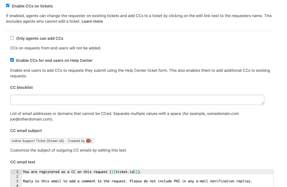 What I dislike about this, is that this same template appears to be used for both notifying CC on 1) Ticket Creation and 2) Ticket Updates. Is there a way I can ditch this template and just use normal triggers that send to Requester + CC that are more specific (1 template for ticket creation and 1 template for ticket update).