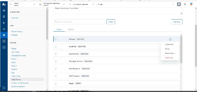 I'm trying to set up conditional ticket fields so that my views have fields that are specific to the view. I don't see the three dots mentioned in the how-to. I have the professional plan, I am also the owner