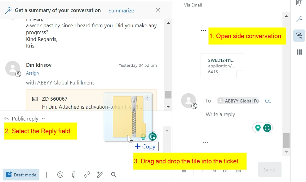 We've noticed an unexpected behaviour in Agent workspace interface: If the side conversation application is open, but the comment composer is in the focus, then when you drag and drop a file, it is still attached to the side conversation instead of being attached to the comment text.