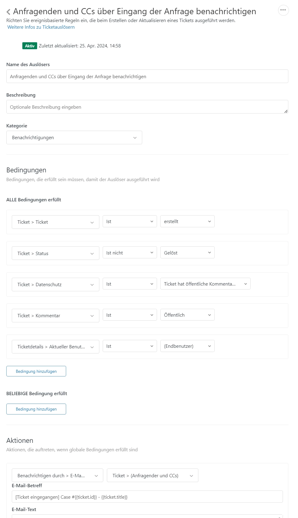 It first started with the CC not working. We would add people and they would not receive it. Regardless of being in the CC. As I was looking into why we don't get a notification when a ticket is reopened on outlook. I reverted everything back to normal, and then the problems started.