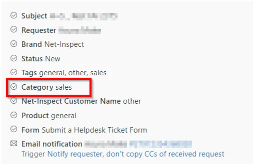 The Trigger listed below does not have any action regarding to Category, how can I determine how the field Category is set so we can get rid of so many tickets that incorrectly have a “sales” category?