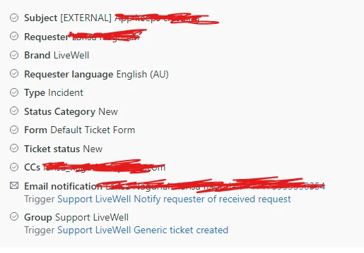 When users send e-mail to us outside our aplication, Zendesk add an "External" word in the subject, and this is blocking us to configure some triggers, because all "outside" e-mails that arrive with the "External". Zendesk recognize that the user's language is English, please, see below and example