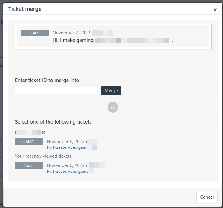 However, to merge, I need to type the ticket number (or copy/paste it) to the Merge field.