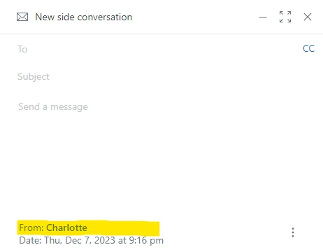 When I forward a Message with a Side-Conversation, the person receiving the message (outside Zendesk) does not see the initial e-mail address of the message we forwarded.