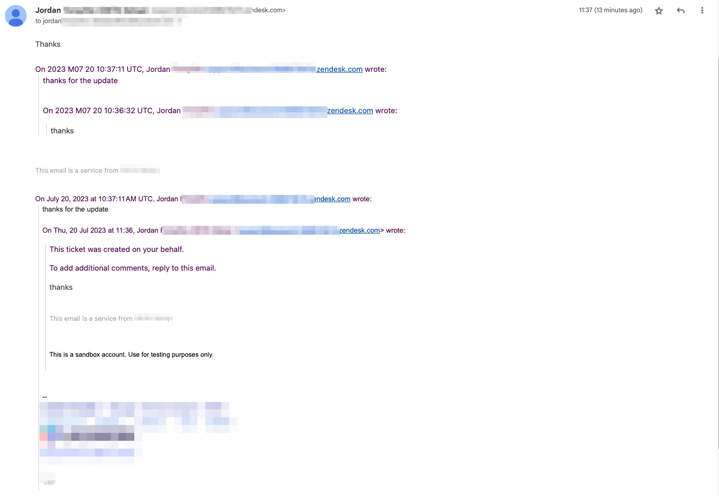 As you can see below, the quote section includes the previous quotes too and it isn't collapsed by default which makes the email look very messy and eventually on large tickets it would be massive. This is only after 3 interactions on the ticket between the agent and requestor.