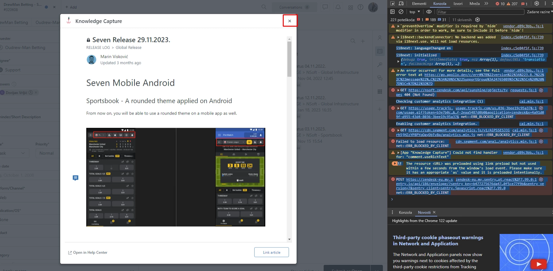 I am having an issue with knowledge capture in Zendesk keeps poping-up. Once the window pops-up, I am unable to close it. I have tried cleaning the cache, and different browsers, but no luck. To be exact, when I press "X", the windows reappear again: