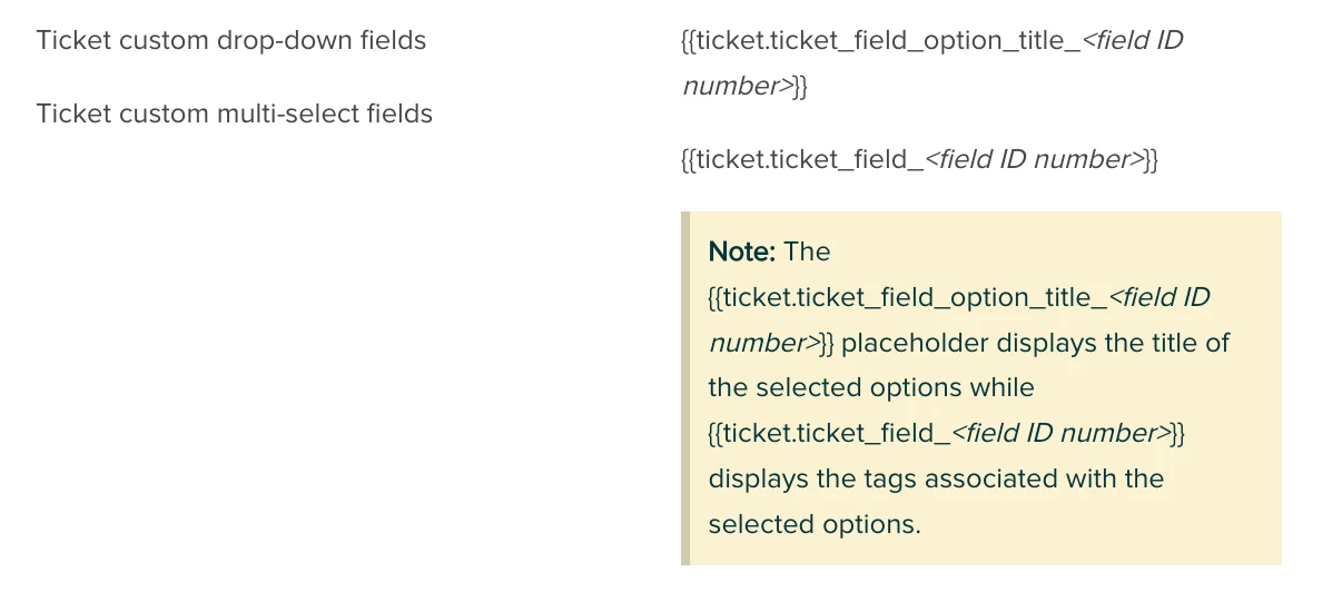 When using the placeholder: ticket.ticket_field_option_title_id, I see that I am getting the display value and not the internal label value.