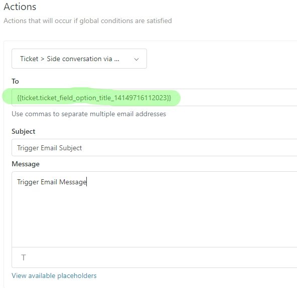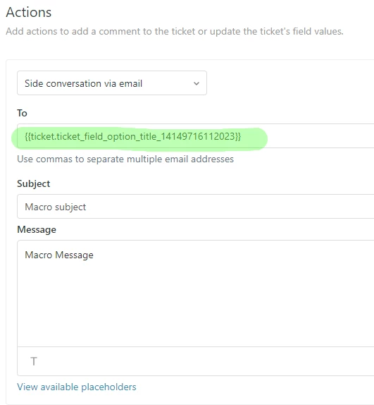 I need to send a selected macro to an e-mail address contained in a customer field upon ticket creation or update. From what I have seen this is only possible through use of webhooks with the e-mail address included as a 'cc' rather than a 'to', has anyone found or can anyone suggest a solution that allows the macro to be sent directly to the required e-mail?