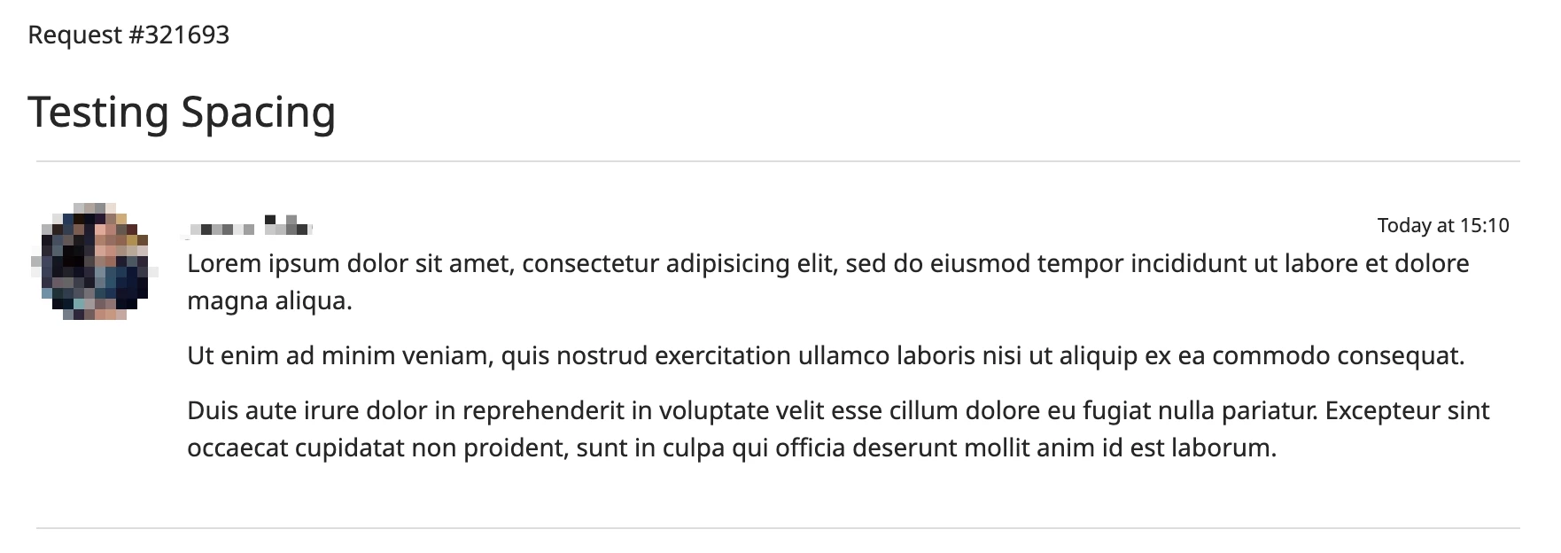 After upgrading to the new Zendesk Workspace, when a ticket is submitted that has basic paragraphs in it, those paragraphs no longer have any margins around them.