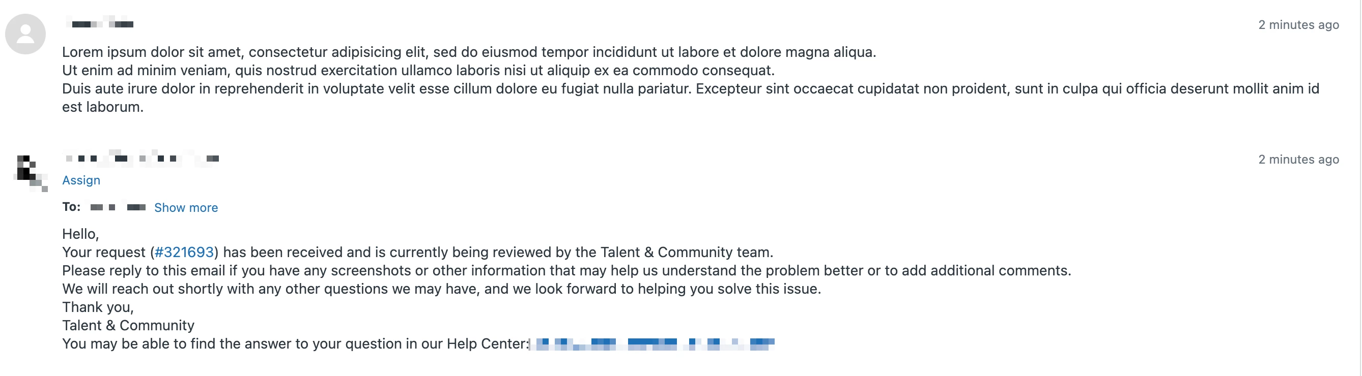 And then, in Zendesk itself, completed squished. And the email reply as well also the same: