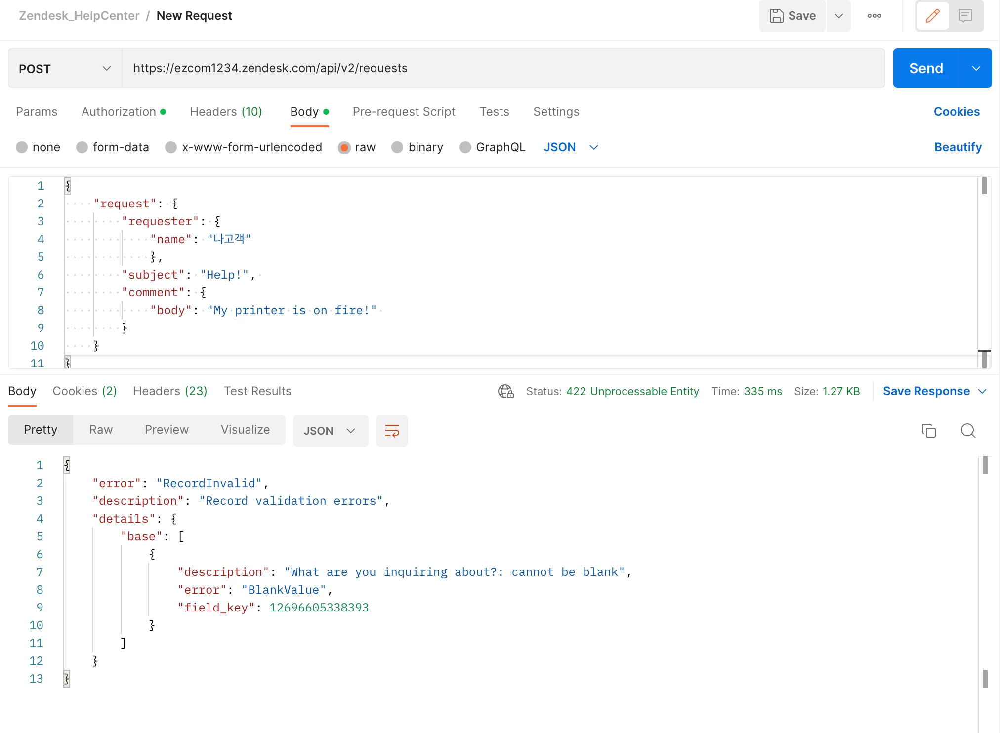 I typed the same in json and copied and typed the same in cURL as it says in API documentation, but I get 422 error.
