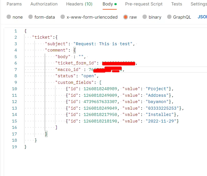 GET /api/v2/macros/{macro_id}/applyendpoint which will return the changes the macro would make to a ticket. You'd then extract those changes and include them in the request to thePOST /api/v2/ticketsendpoint when creating the ticket. Here's a link to the docs which goes in to a bit more detail:- Macro API - Show changes to ticket