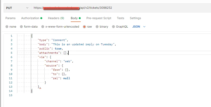 I tried doing a POST request as follows which did not work. The ticket was created but it did not have the comments.
