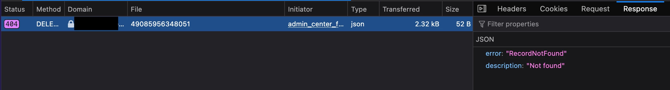{"error":"RecordNotFound","description":"Not found"}I tried using the OAuth Client page in the admin, found the token I was interested in by paging through lots of pages manually (you need a better UI on the Oauth Client > View Tokens page), but I found it, and tried to delete from there. It did not delete there, either, I also got a 404