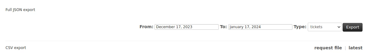 Is it possible to download the reports under Admin Section > Account > Tools > Reports via the api? It is just called "Full JSON export" or "CSV export"