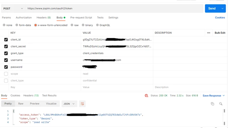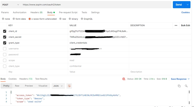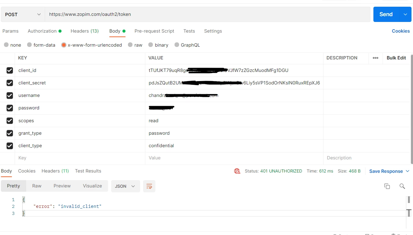 As per online document of Zendesk supports Oauth2 grant types: "password" and "client_credentials". We are trying with grant types: "password", we are getting "error": "invalid_client" here is the link which we are referring to generate access token
