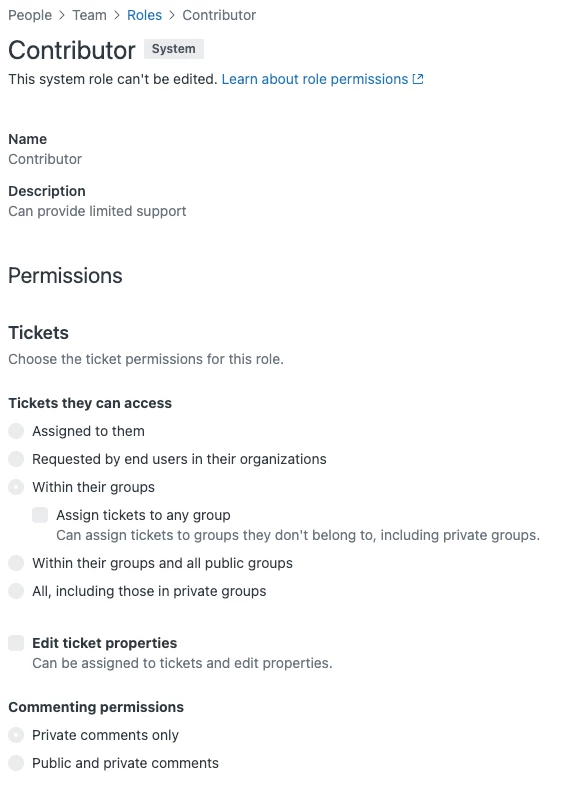 Based on your description. It sounds more like they don't have the "Edit ticket properties" permissions. Keep in mind that the role in your screenshot is a system role that can't be modified. If you want to modify the role, you can recreate it as a custom role.