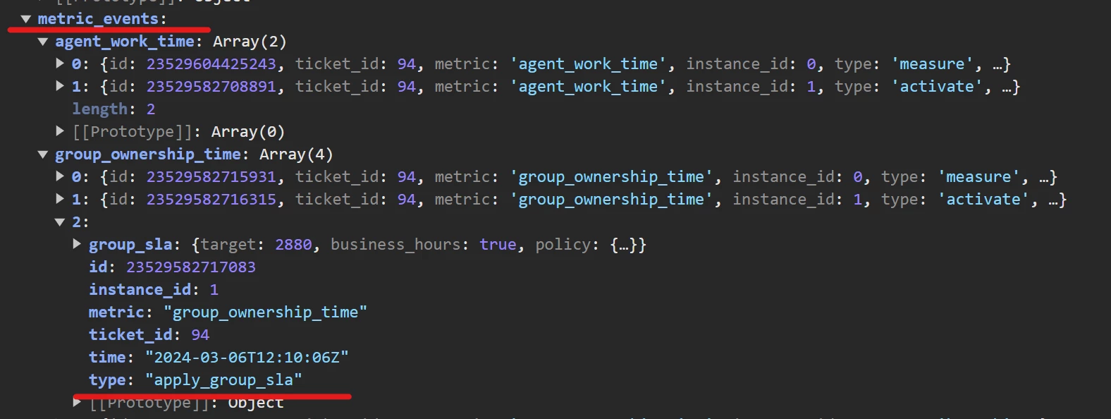 We are using zendesk apis to get some information for our support app. When we open the ticket tab we can see the sla time for the ticket as the image shows, but we are not able to get that info from the ticket API. Are we missing something?