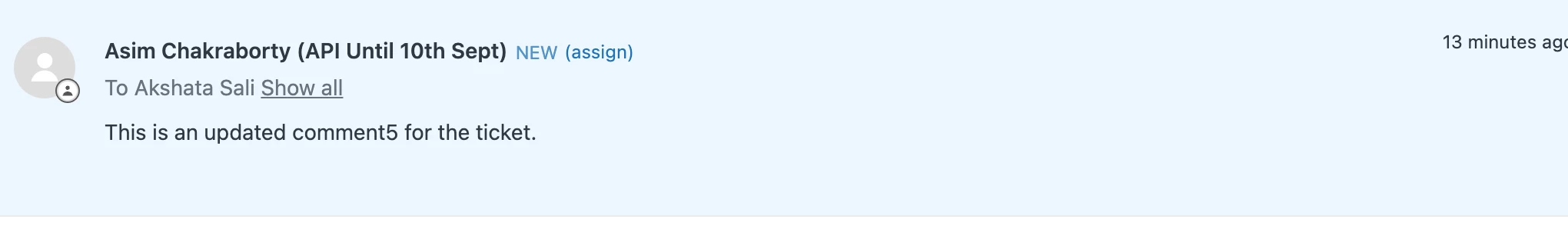 "body": "This is an updated comment5 for the ticket."