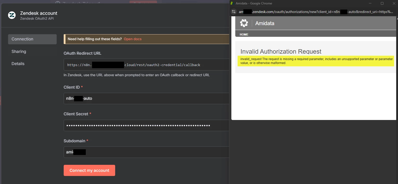 I'm trying to add Zendesk Trigger node on n8n platform and I'm using OAuth2 method, I have created a OAuth client under Apps and integration> APIs>Zendesk API>OAuth Clients.
