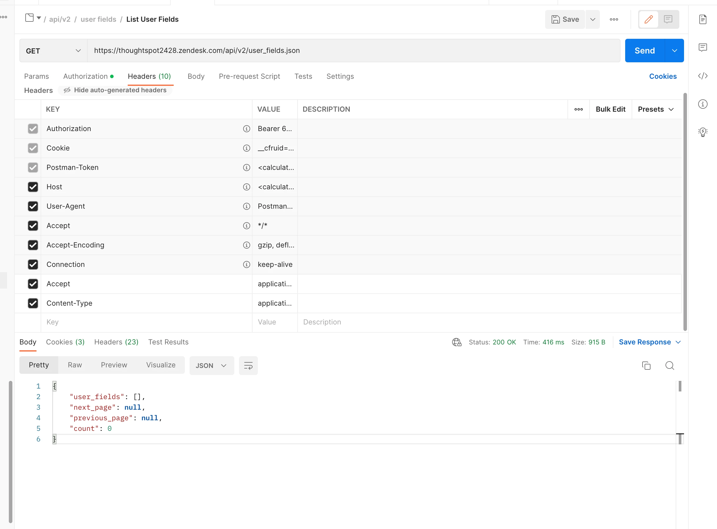 List users fields API is returning no fields.I am able to create user and even those user fields were not returned.