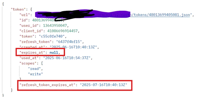 - In the documentation, the property is listed as expires_in, but in the actual response, we see expires_at. Could you clarify the reason for this difference?