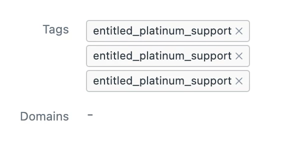 But, in the UI, when we look at the organization, we see "entitled_platinum_support" 3 times: