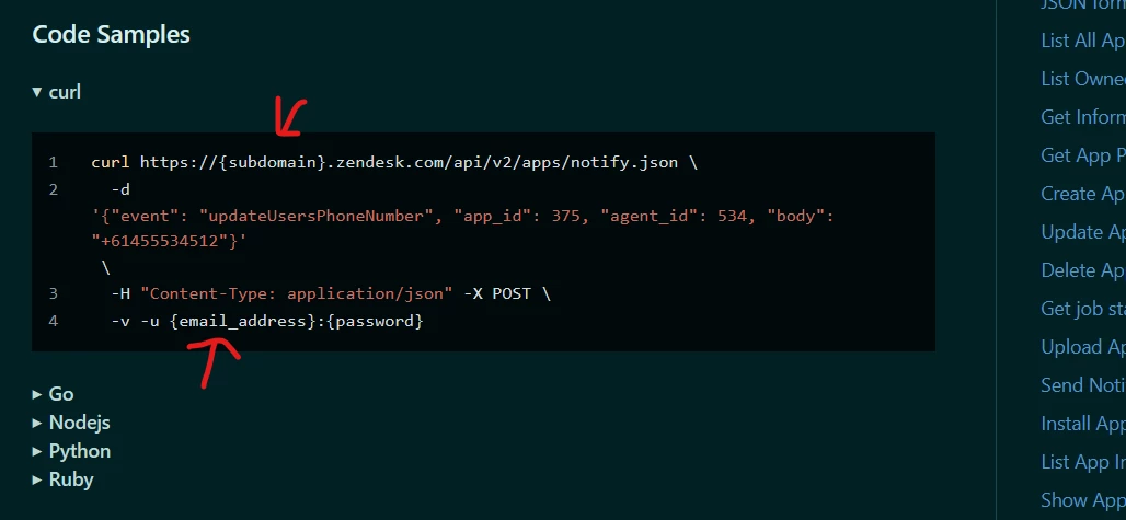 Lots of user will install my app, If I will have to make Notification API call to one of them, I will need, Zendesk support subdomain URL, and Authentication,