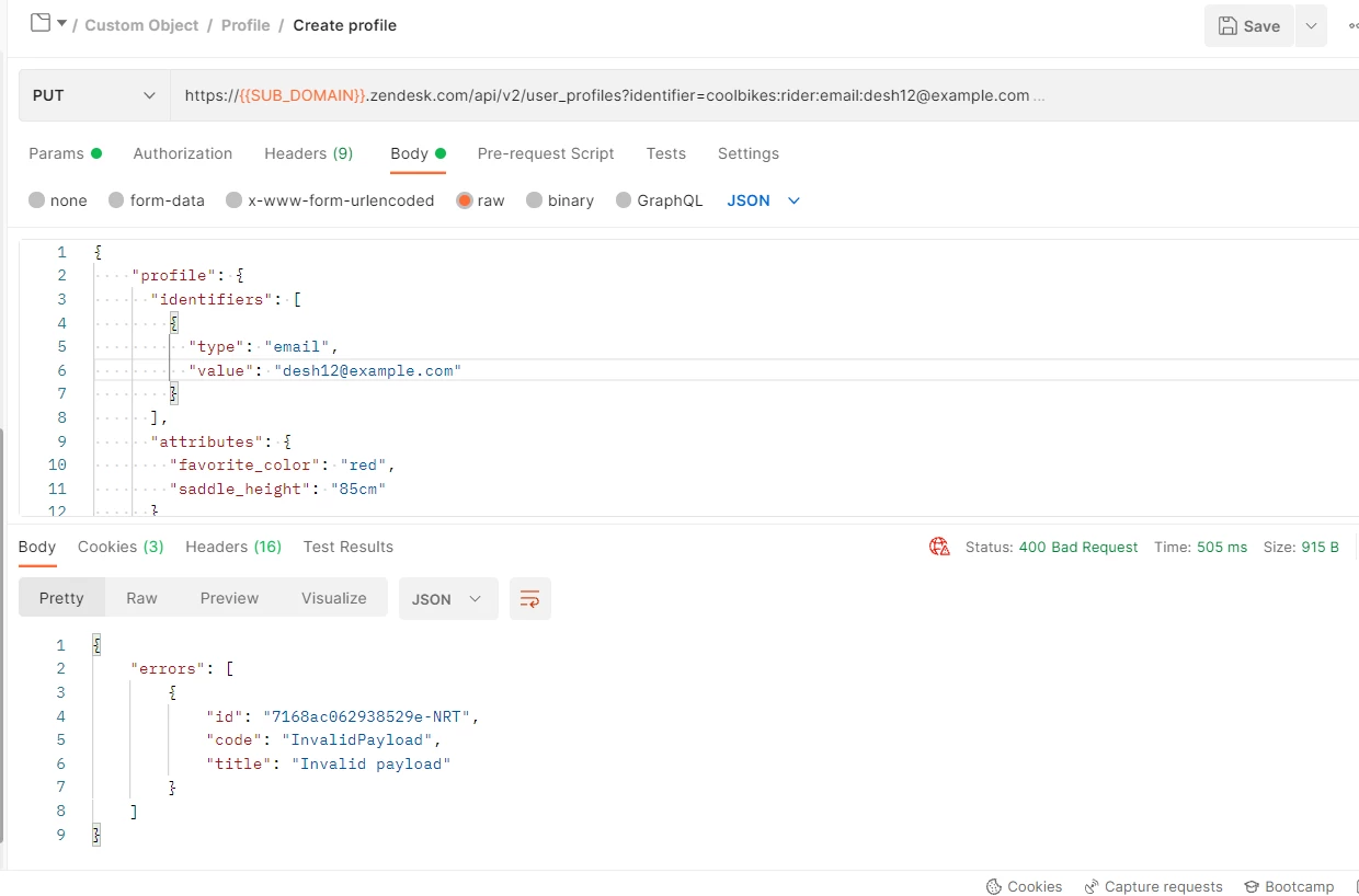 And if i do same request by just changing some value of identifier is url and in payload i get invalidPaylod error