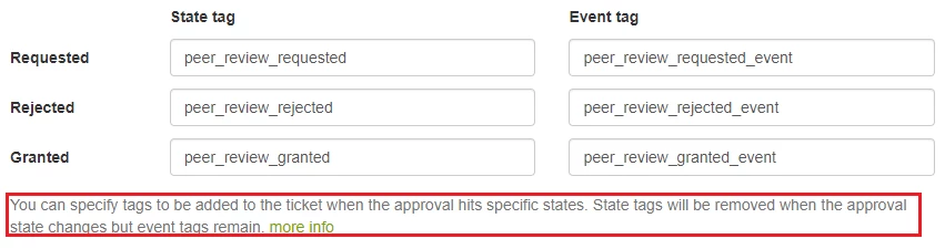 Within the Approvals app I have added the following event tags in the Change Peer Review template ...