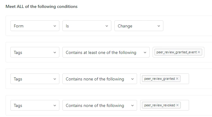 The problem I see is that a Change Peer Review could be approved and revoked more than once in the same ticket, so how can I get this to trigger again, considering I have added a tag in Actions to stop the trigger looping?