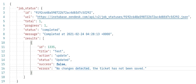 I'm trying to update some ticket fields via API, but getting a non-error failure. Can someone please suggest what I should try to unblock this? Below is my request: