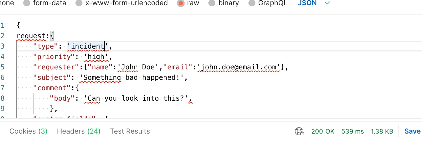 I'm referencing the Create Request documentation, and I think that should be the right format?
