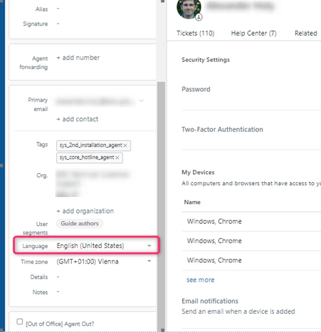 I am looking for a way to let users update their preferred language from the help center profile page.