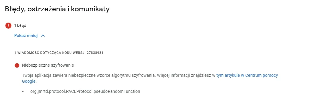 Hi, we were informed by Google that our App contains org.jmrtd.protocol.PACEProtocol.pseudoRandomFunction dependency.