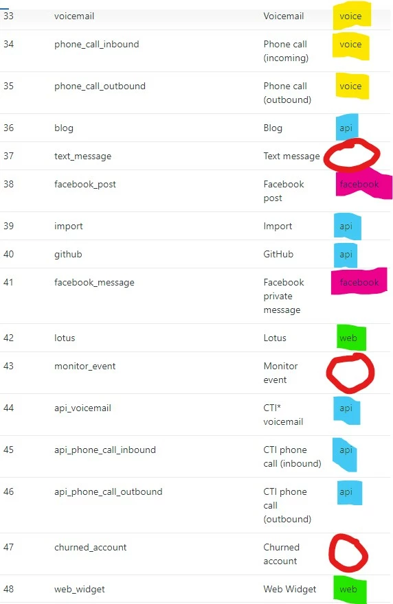 The document you linked provides the full list of current channels and their corresponding Via types and Via IDs. Are you experiencing issues with updating an already existing ticket, or specifying a channel when creating a new ticket?