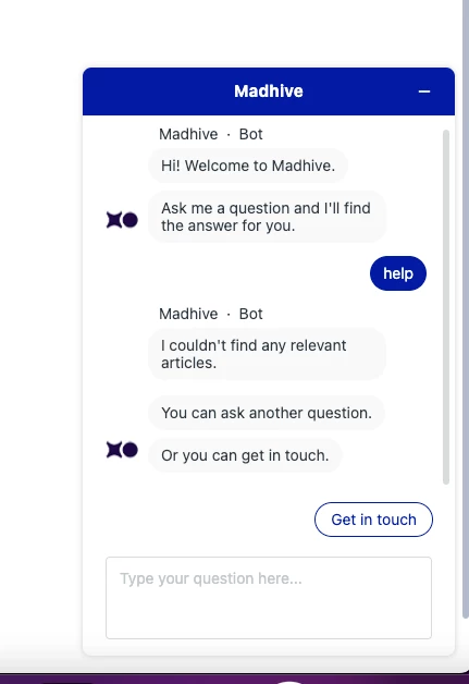 The chatbot does not return a response to the query in local env. It works fine in the Help Center. I don't understand why it doesn't work.. If anyone has experience this before please point me to the right direction.