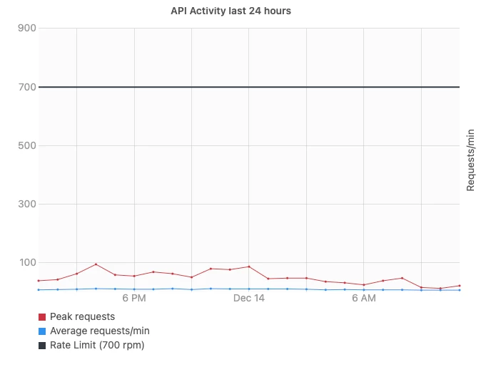 I have attached a screenshot of our api activity graph and we are no where close to our requests per minute. So surprised we are getting rate limited.