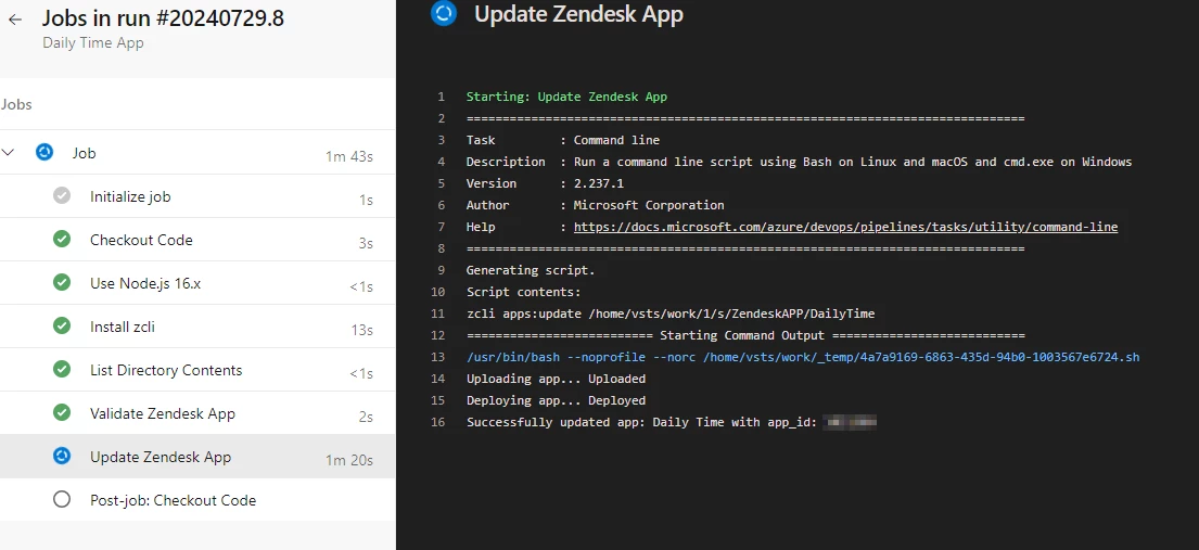 I have created a support app and set up a CI/CD pipeline using Azure DevOps with the zcli apps:update command. The app communicates with an external API hosted in Azure API Management with OAuth.
