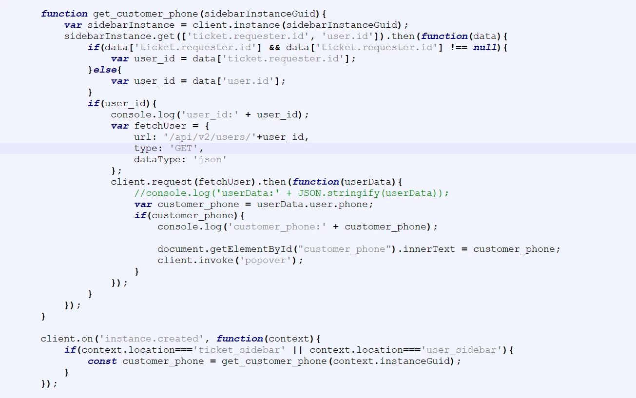 How do I get customer's phone number on my app's top_bar, as soon as agent visits the User-page or ticket-page?