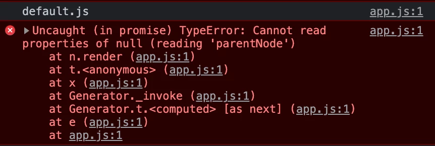 Uncaught (in promise) TypeError: Cannot read properties of null (reading 'parentNode') at n.render (app.js:1)