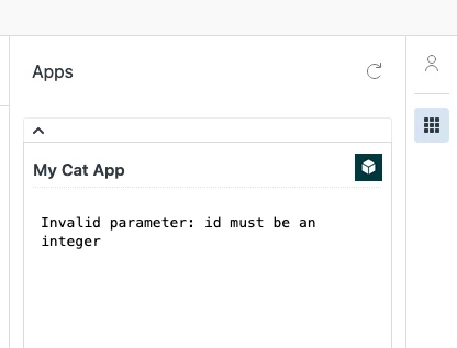 If we set `signedUrls` to true to make the app secure, it shows the following error message on the sidebar.