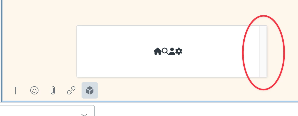 I am creating a Zendesk app with React and part of the app is in the ticket editor. I wanted to create a toolbar similar to what Zendesk has for their Text editor. But when make my toolbar there seems to be a right column next to it even if I resize it. I can't figure out how to get this ugly column out of the iframe. I have gone through all the css on the broswer with an inspector and nothing makes it go away. Is it possible to get rid of this?