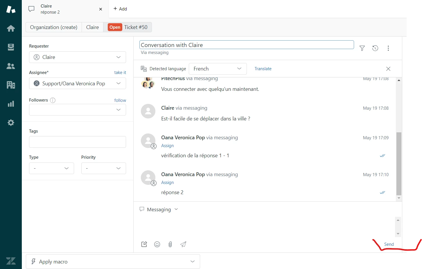 In Zendesk Support, for a ticket created through the messaging channel, can I hide the default "Send" button from the Messaging section, in order to replace it's functionality with a custom button added as a support ticket editor app?