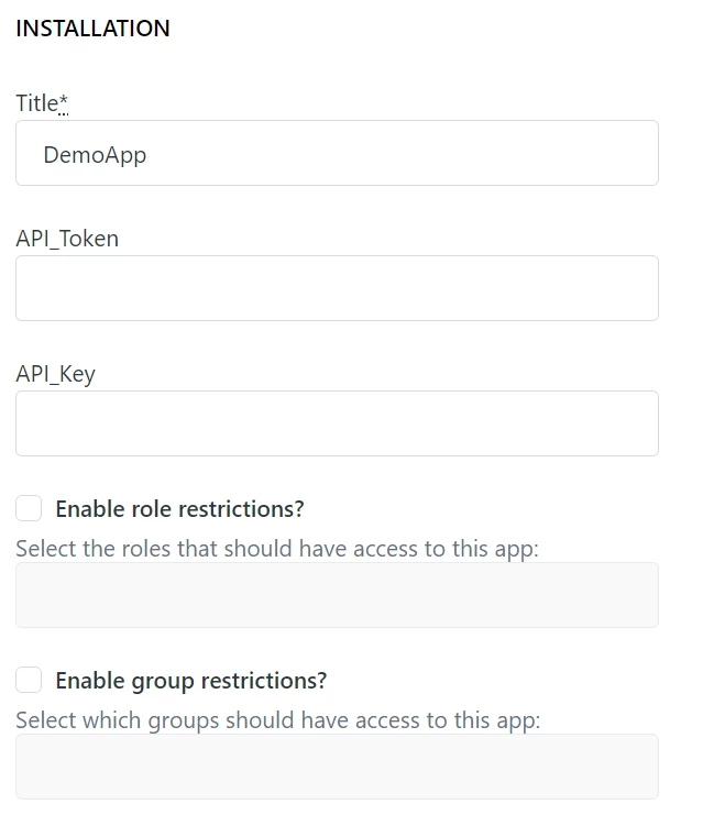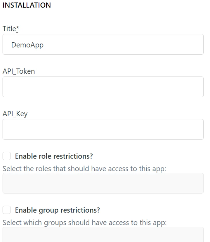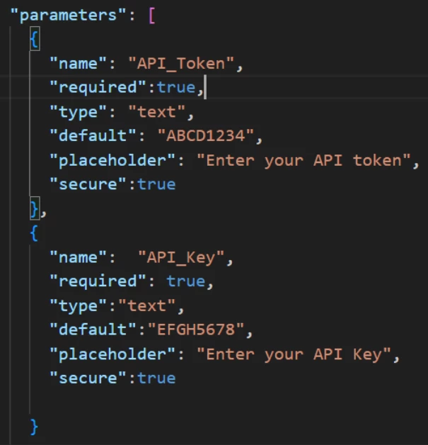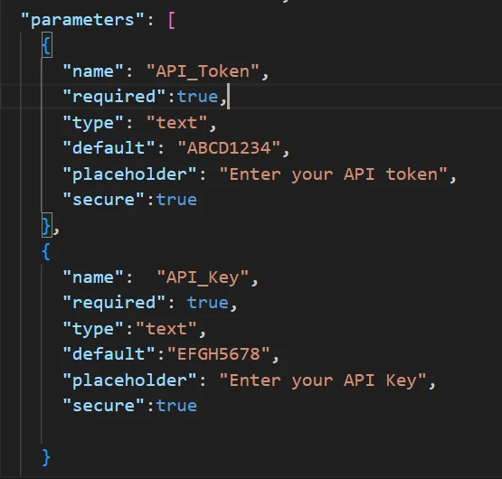 We have created parameters in "manifest.json" to get certain inputs from "Zendesk Admin Center" (Let say, API key and API token)..